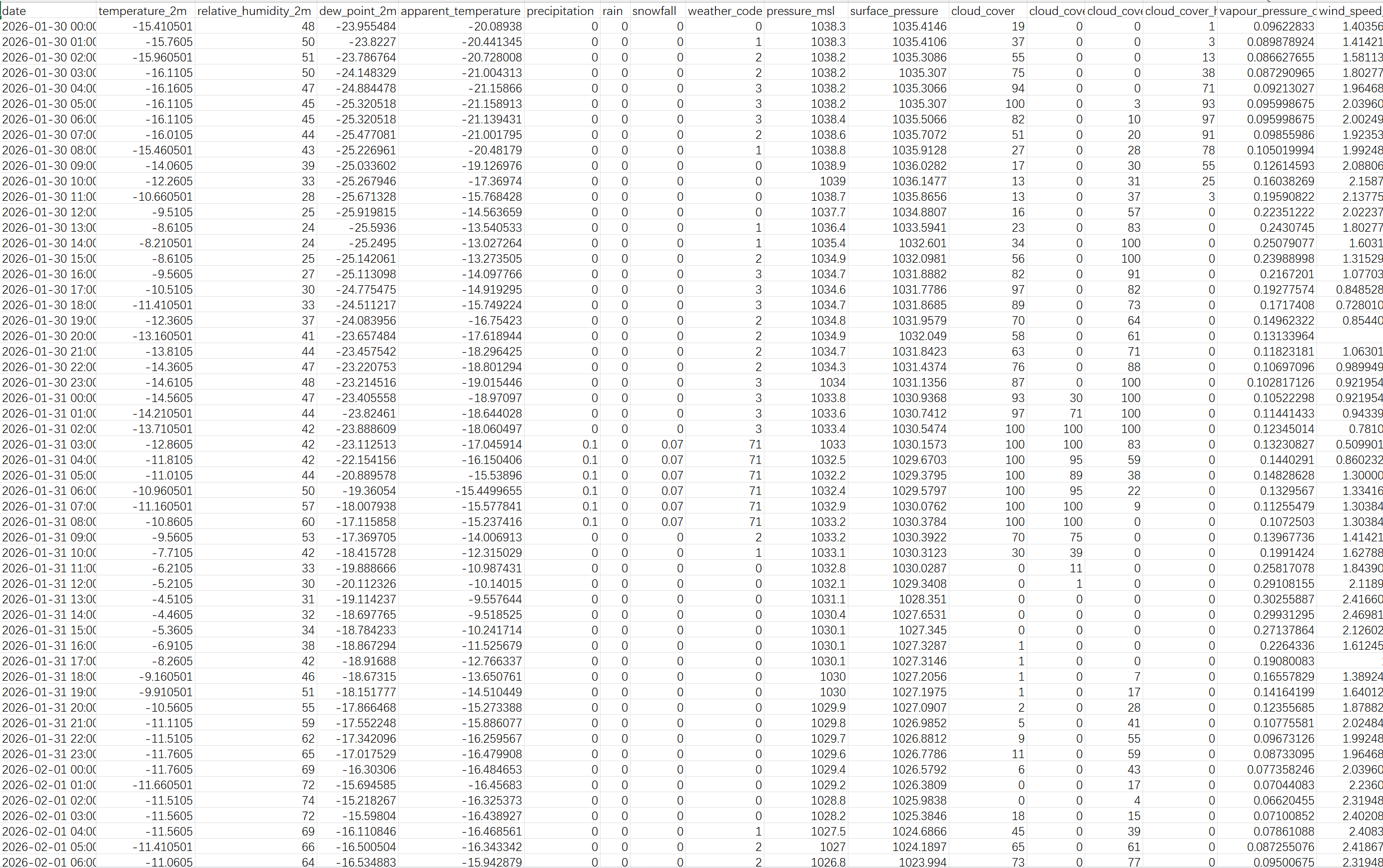 全国主要城市城市未来10日32要素逐小时气象预报数据