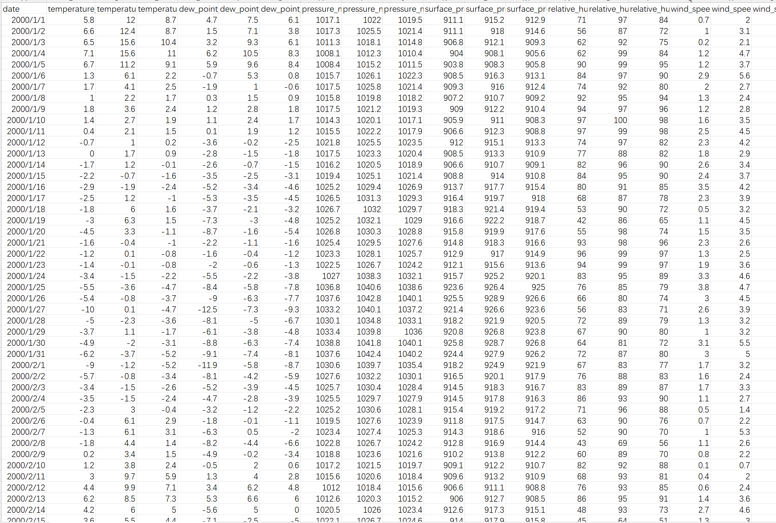 历史天气数据集